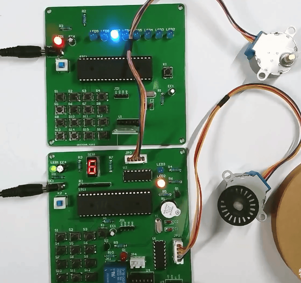②可实现通过一个四相步进电机控制电梯升降,另一个四相步进电机控制电梯开关门