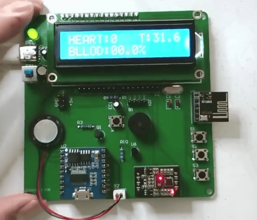 1、通过心率血氧检测模块来检测心率的大小,温度模块检测温度。