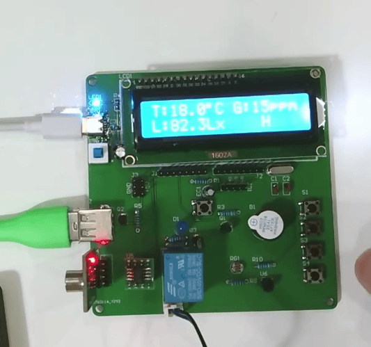 4.可以通过按键调整温度、气体、光照的阈值,以及切换界面。