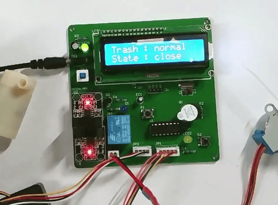 可实现LCD1602显示垃圾桶是否满了以及开盖状态
