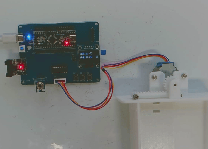 标签:32单片机、OLED、红外测温、四相步进电机、语音播报。