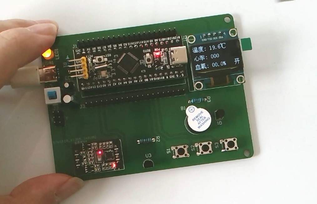 标签:STM32、OLED12864、DS18B20、心率血氧模块