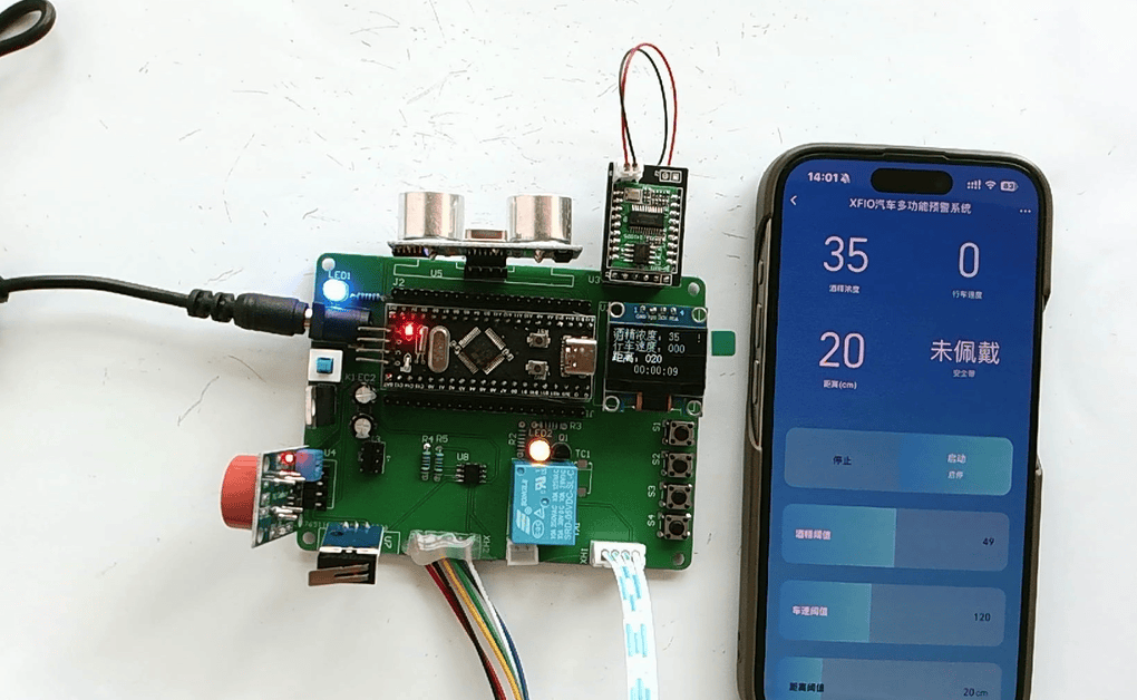 1、使用酒精传感器检测车内浓度,断开继电器源、语音报警