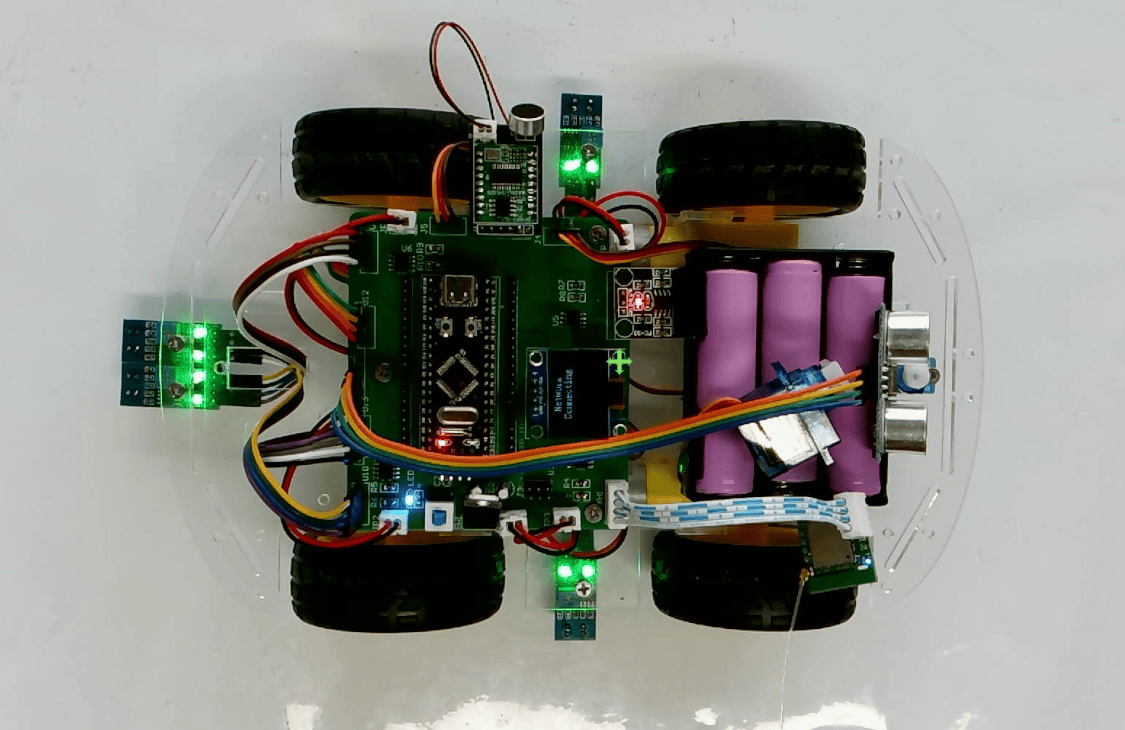 传感器:超声波模块(HC-SR04)、舵机(SG90)、红外循迹模块(TCRT5000 )、红外对管(FC-33)
