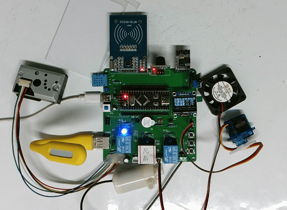 标签:STM32、OLED12864、DS18B20、PM2.5、USB灯、RFID、SG90